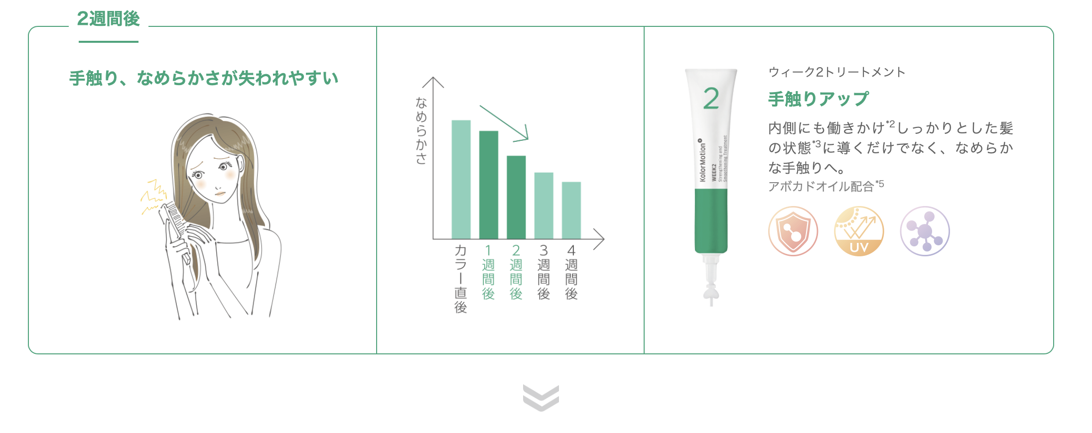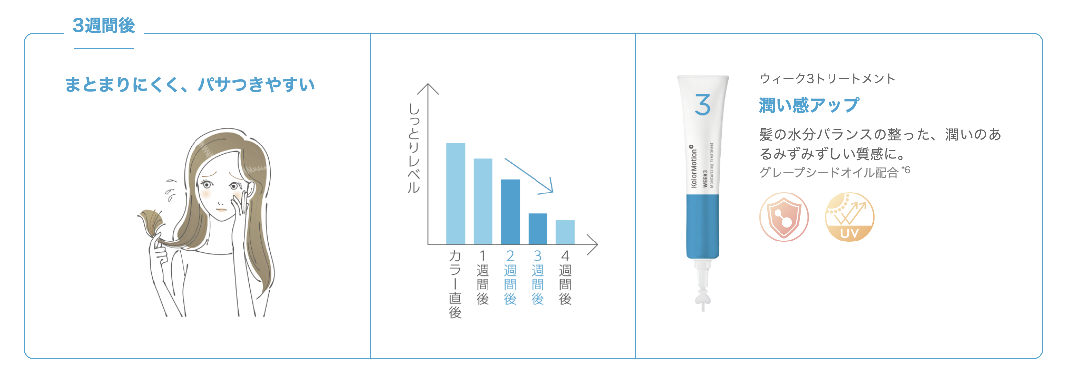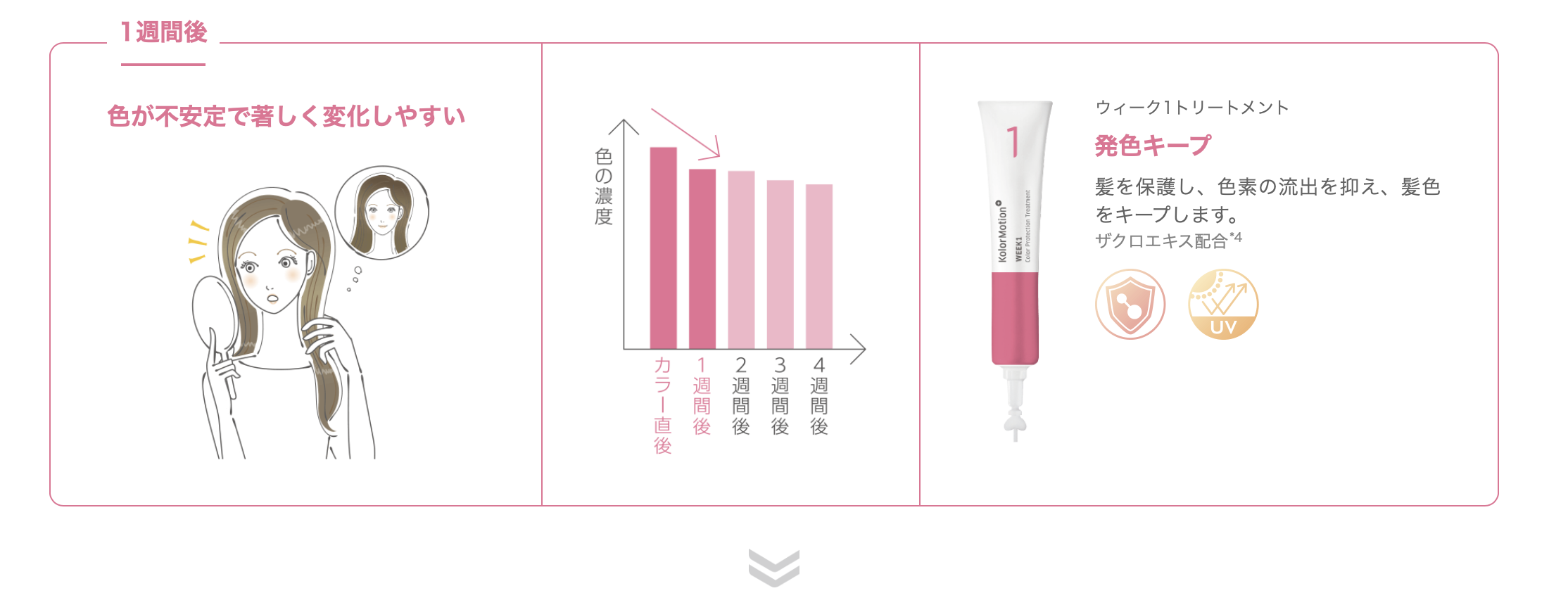 1・カラーリングの発色・質感が持続!